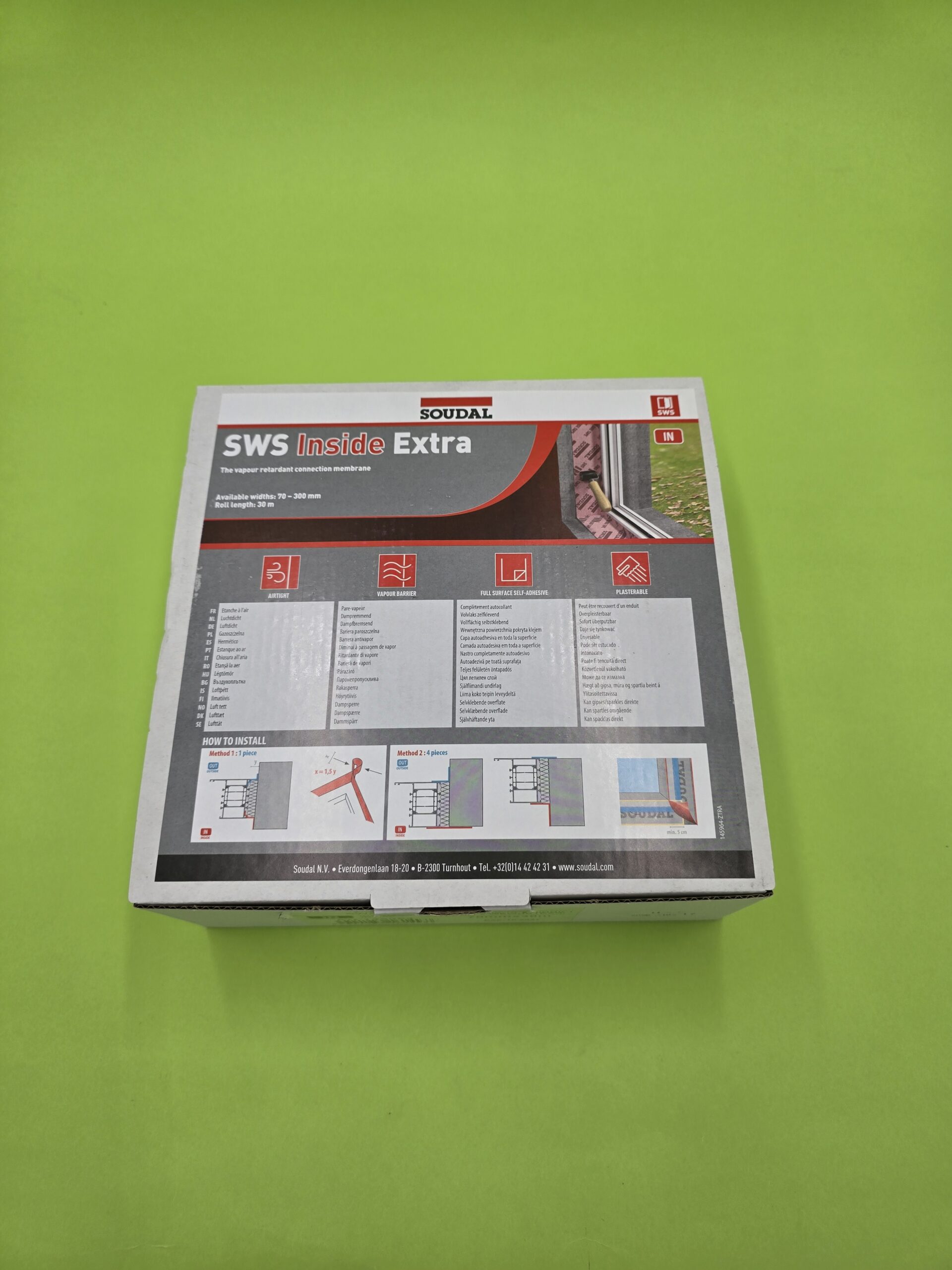 A SWS Inside Extra egy hermetikus, párazáró összekötő szalag ablakokhoz belső használatra, erős öntapadó szalaggal az ablakkerethez való rögzítéshez, valamint hátoldalán erős öntapadó réteggel az egész felületen.